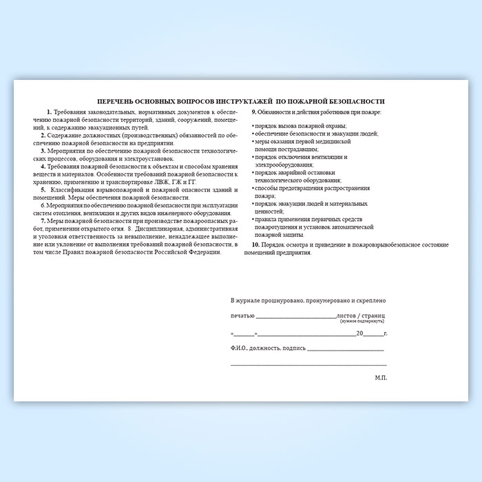 Журнал регистрации инструктажей по пожарной безопасности в Ижевске купить