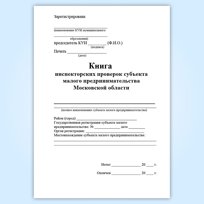 Книга инспекторских проверок субъекта малого предпринимательства Московской области в Ижевске купить