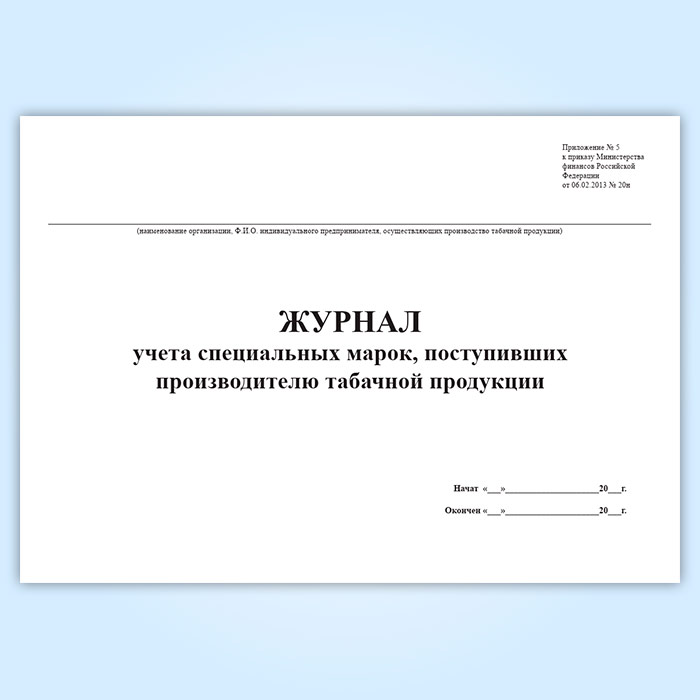 Журнал учета специальных марок, поступивших производителю табачной продукции в Ижевске купить