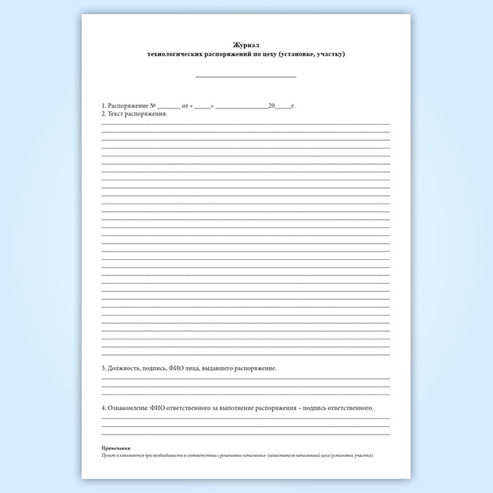 Журнал технологических распоряжений по цеху (установке, участку) в Ижевске купить