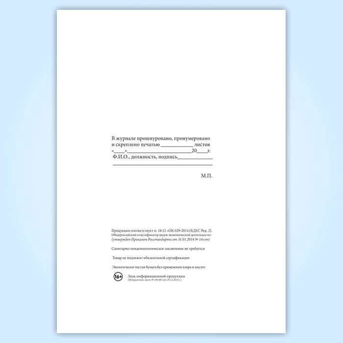 Вы получаете печатную продукцию прошнурованной и c местом для вашей печати в соответствии с действующими нормативными документами: