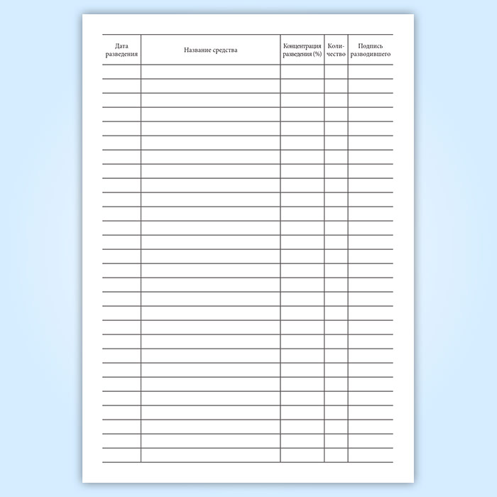 Журнал регистрации разведения моющих и дезинфицирующих средств в Ижевске купить