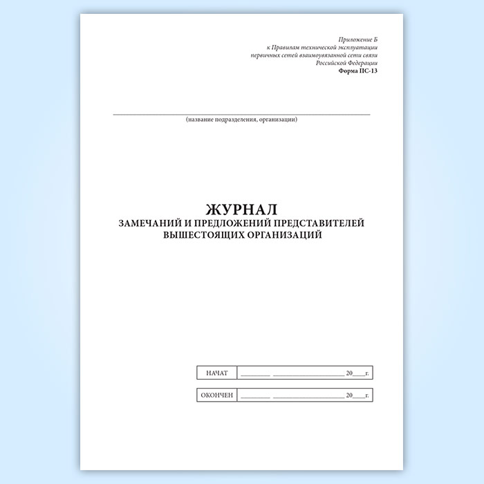 Журнал замечаний и предложений представителей вышестоящих организаций (форма ПС-13) в Ижевске купить