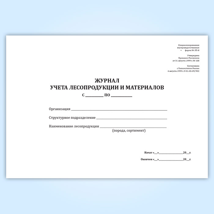 Журнал учета лесопродукции и материалов (форма ЛП-8) в Ижевске купить