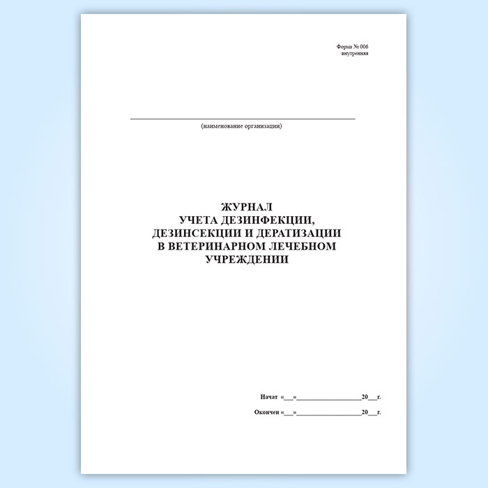 Журнал учета дезинфекции ветеринарного лечебного подразделения (форма № 006 вн.) в Ижевске купить
