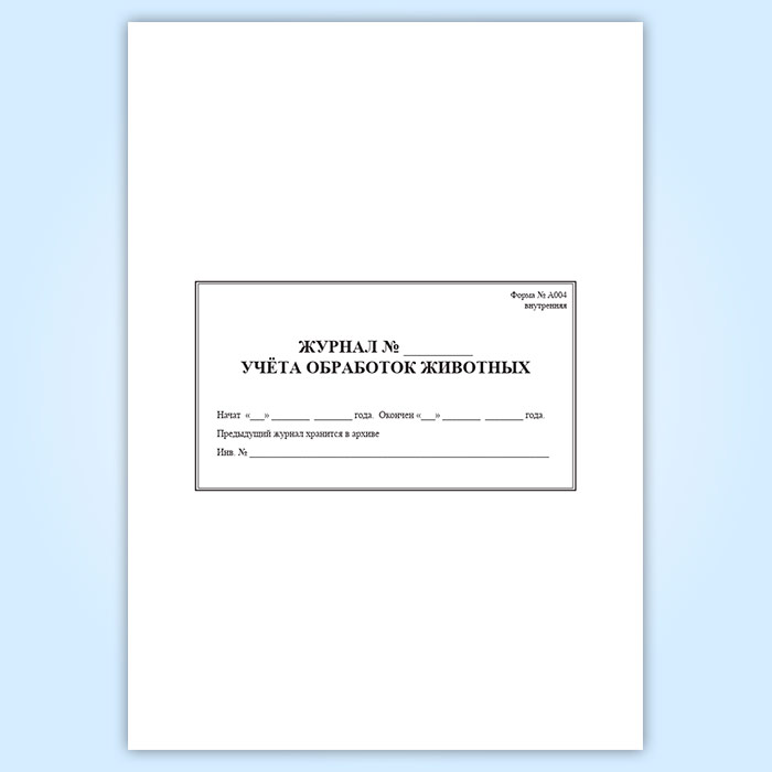 Журнал обработки животных (форма А 004) в Ижевске купить