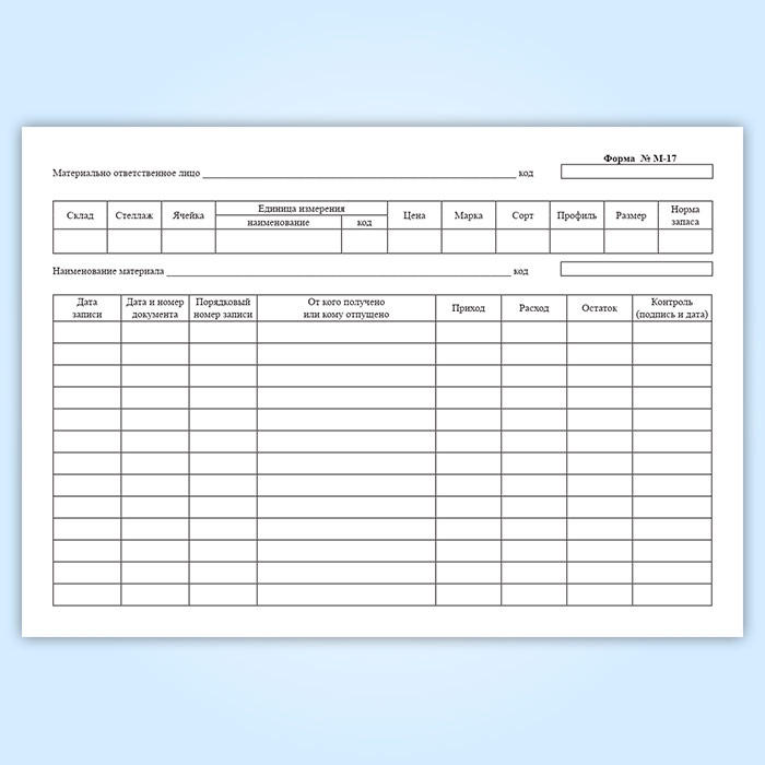 Инвентарный журнал учета материалов (форма М-17) в Ижевске купить