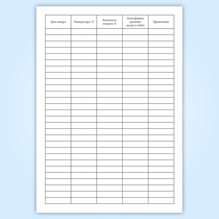Журнал регистрации температуры, влажности, атмосферного давления в Ижевске купить