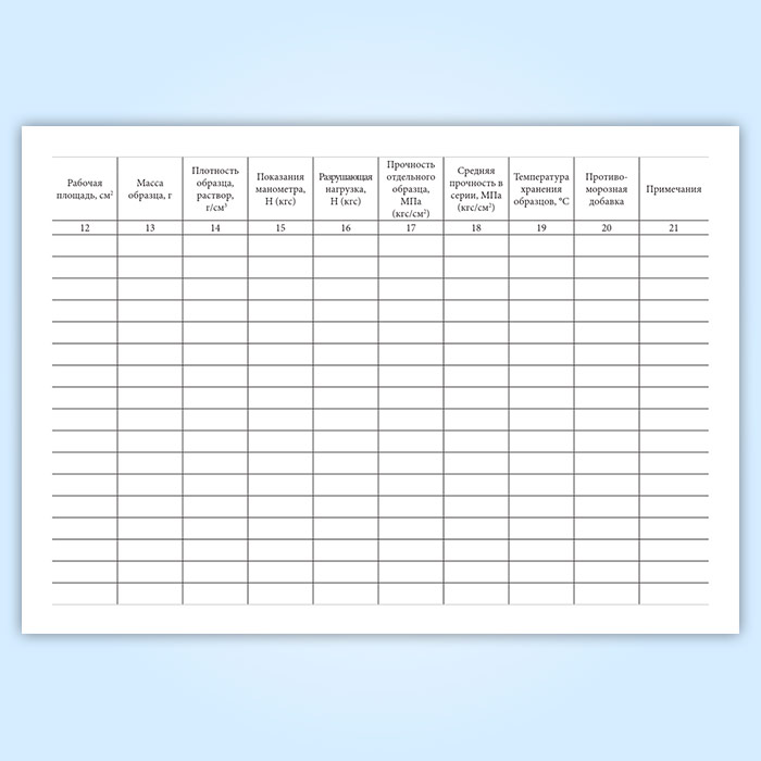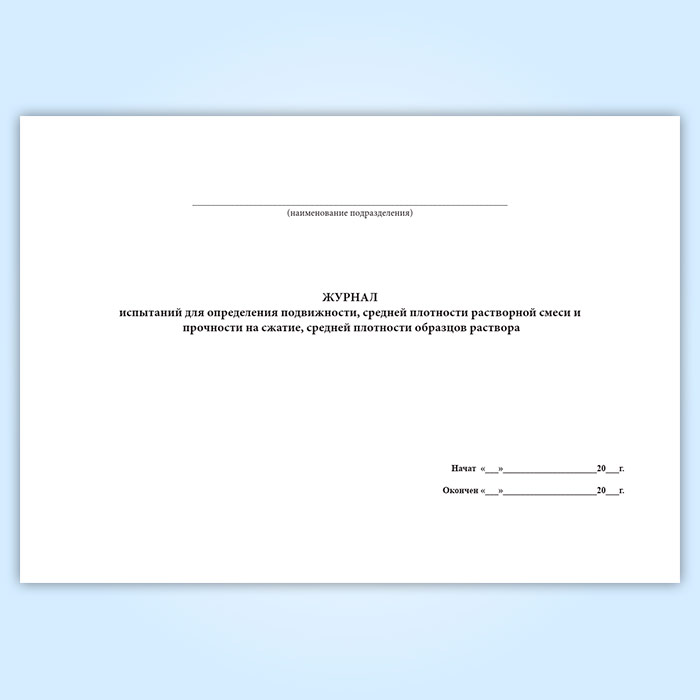 Журнал испытаний для определения подвижности, средней плотности растворной смеси и прочности на сжатие, средней плотности образцов раствора в Ижевске купить