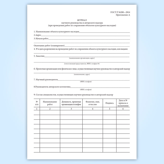 Журнал научного руководства и авторского надзора при проведении работ по сохранению объектов культурного наследия в Ижевске купить