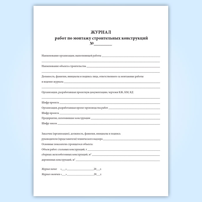 Журнал работ по монтажу строительных конструкций в Ижевске купить