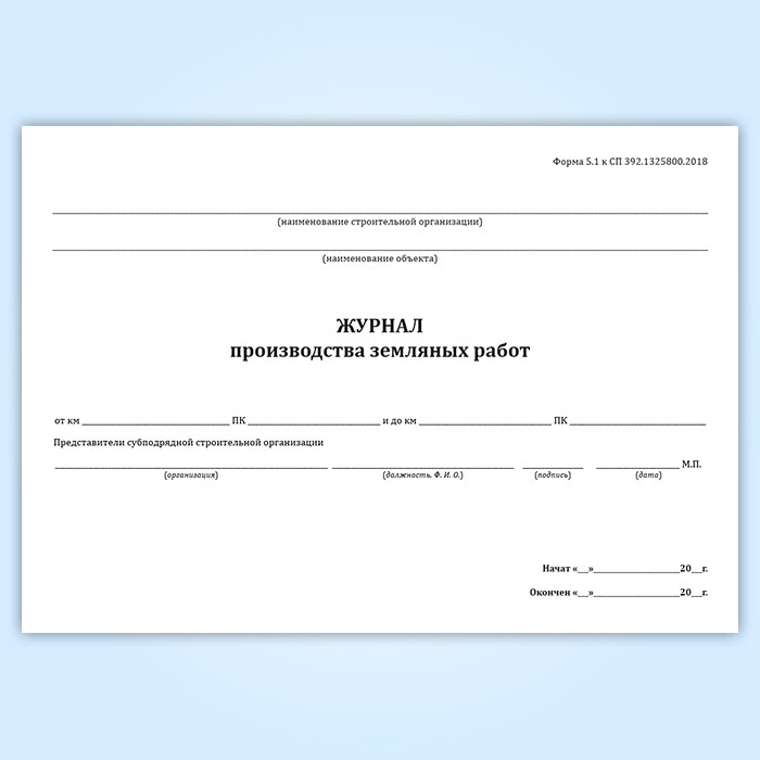 Журнал производства земляных работ (форма 5.1) в Ижевске купить