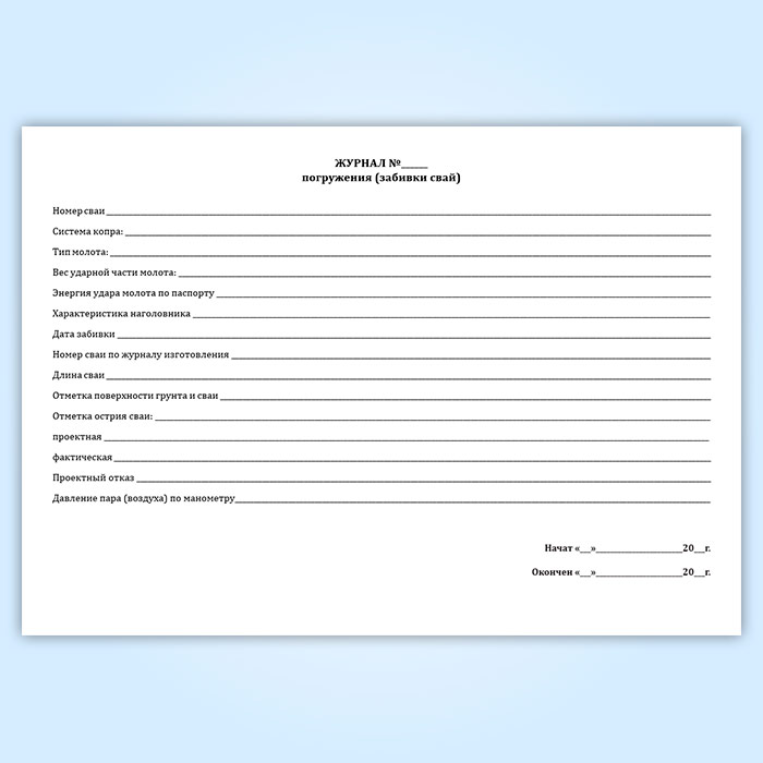 Журнал погружения (забивки свай) (форма 4.1) в Ижевске купить