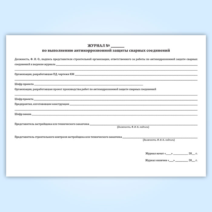 Журнал по выполнению антикоррозионной защиты сварных соединений (форма 12.3) в Ижевске купить