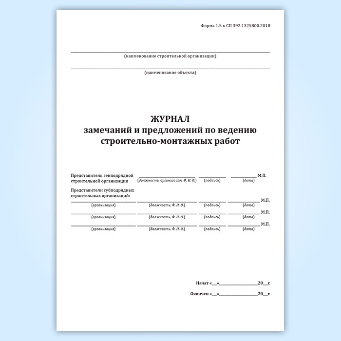 Журнал замечаний и предложений по ведению строительно-монтажных работ (форма 1.5, СП 392.1325800.2018) в Ижевске купить