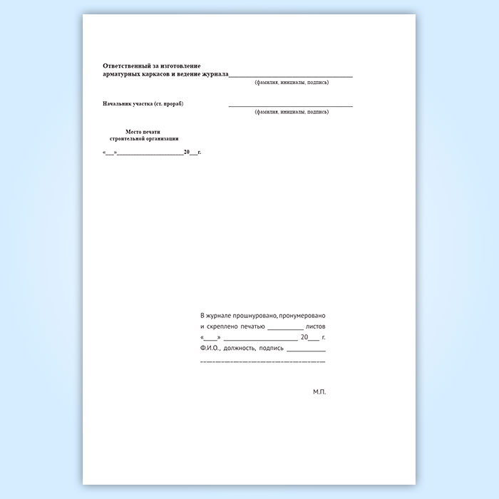 Журнал изготовления арматурных каркасов для бетонирования монолитных и сборных железобетонных конструкций на строительстве в Ижевске купить