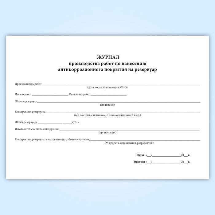 Журнал производства работ по нанесению антикоррозионного покрытия на резервуар в Ижевске купить