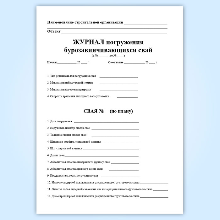 Журнал погружения бурозавинчивающихся свай в Ижевске купить