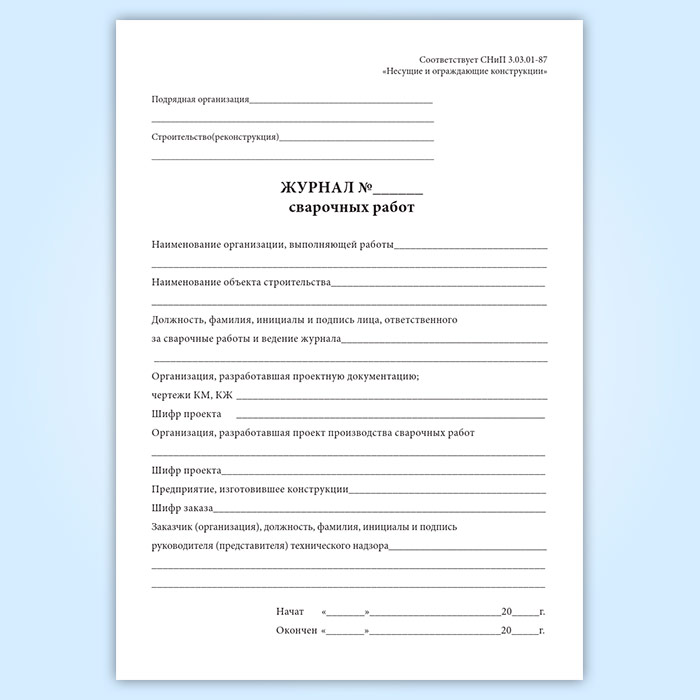 Журнал сварочных работ (СНиП 30301-87) в Ижевске купить