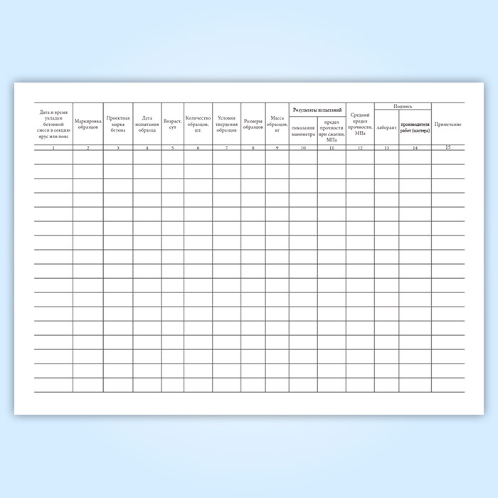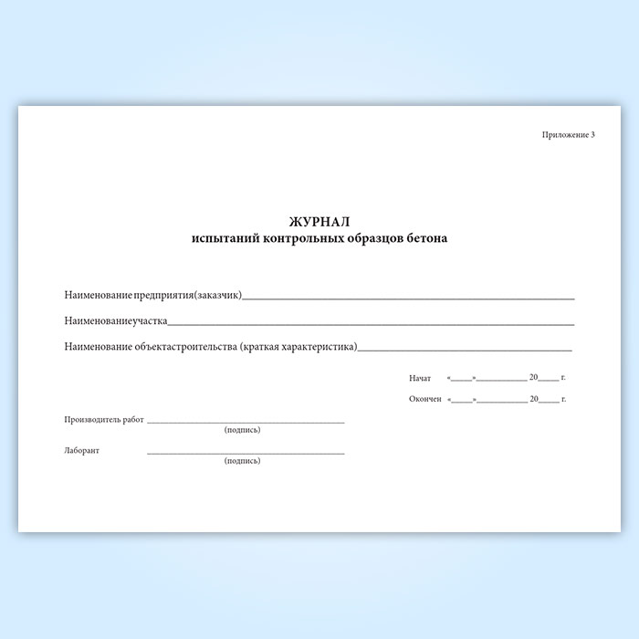 Журнал испытаний контрольных образцов бетона (ВСН 430-82) в Ижевске купить