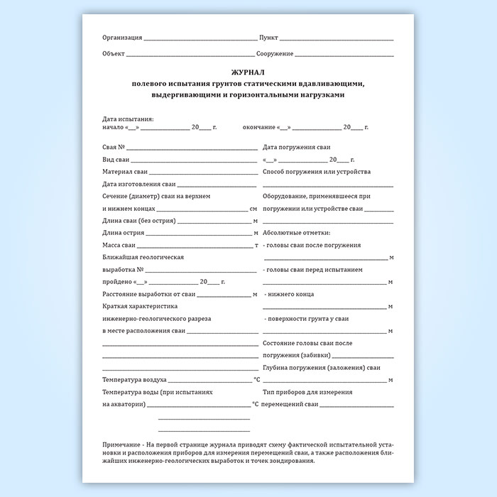 Журнал полевого испытания грунтов статическими вдавливающими, выдергивающими и горизонтальными нагрузками в Ижевске купить