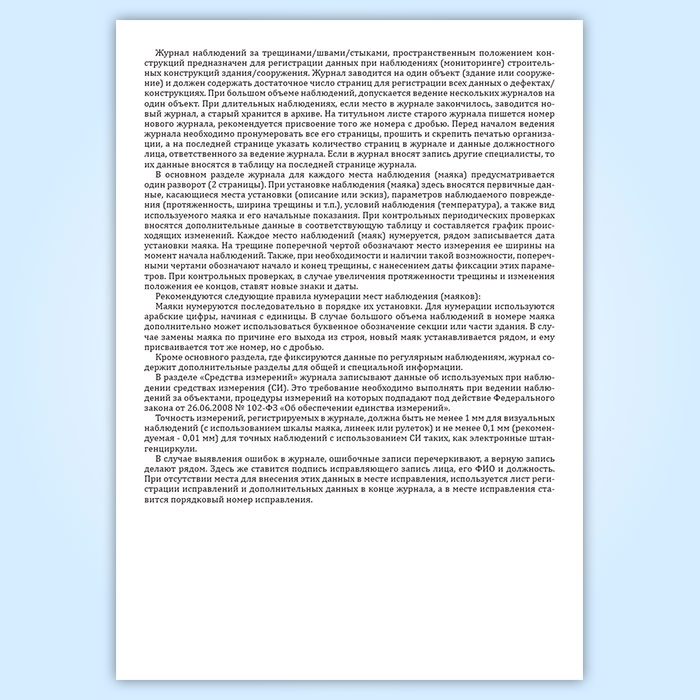 Журнал наблюдений за трещинами/швами/стыками, пространственным положением конструкций (для одного объекта) в Ижевске купить