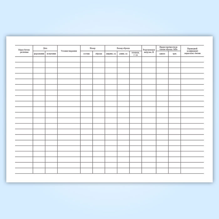 Журнал результатов по определению прочности бетона эталонным молотком Кашкарова в Ижевске купить