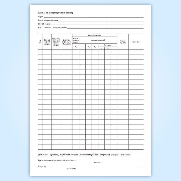 Журнал (протокол) ультразвукового контроля сварных стыковых соединений стержней арматуры в Ижевске купить