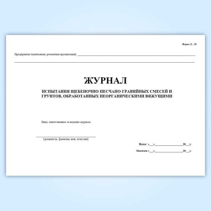 Журнал испытания щебеночно-песчано-гравийных смесей и грунтов, обработанных неорганическими вяжущими в Ижевске купить