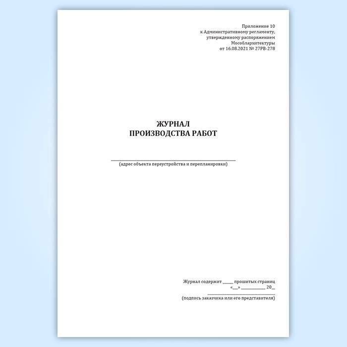 Журнал производства работ (Распоряжение Мособлархитектуры МО от 16.08.2021 N 27РВ-278) в Ижевске купить