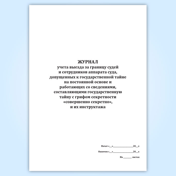 Журнал учета выезда за границу судей и сотрудников аппарата суда, допущенных к государственной тайне на постоянной основе и работающих со сведениями, составляющими государственную тайну с грифом секретности «совершенно секретно», и их инструктажа в Ижевске купить
