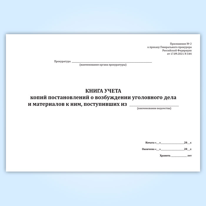 Книга учета копий постановлений о возбуждении уголовного дела и материалов к ним в Ижевске купить