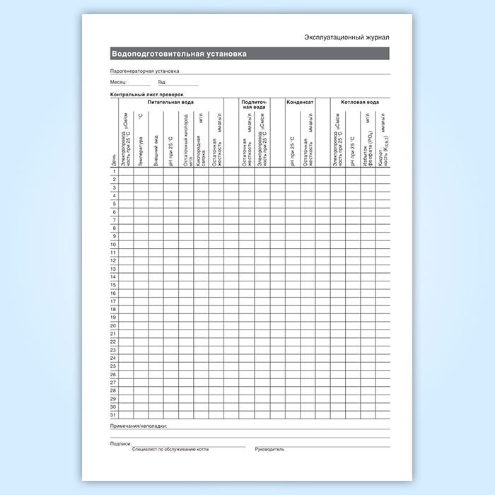 Сменный журнал водоподготовительной установки с Н-катионитными фильтрами в Ижевске купить