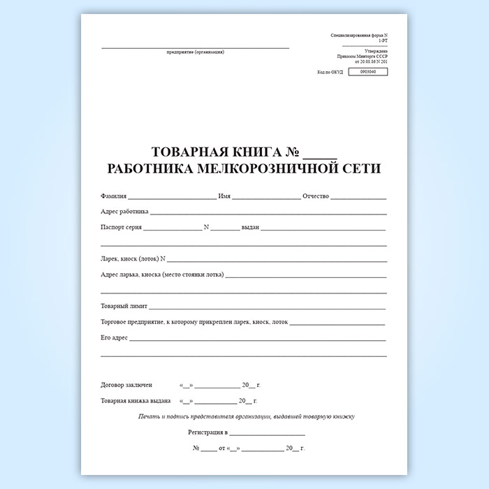 Товарная книга работника мелкорозничной сети. Специализированная (форма № 1-РТ) в Ижевске купить