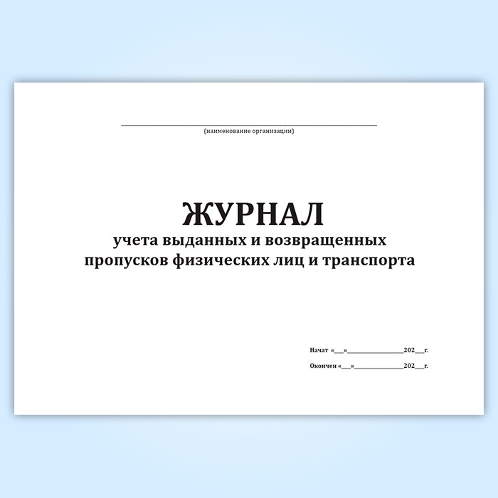 Журнал учета выданных и возвращенных пропусков физических лиц и транспорта в Ижевске купить