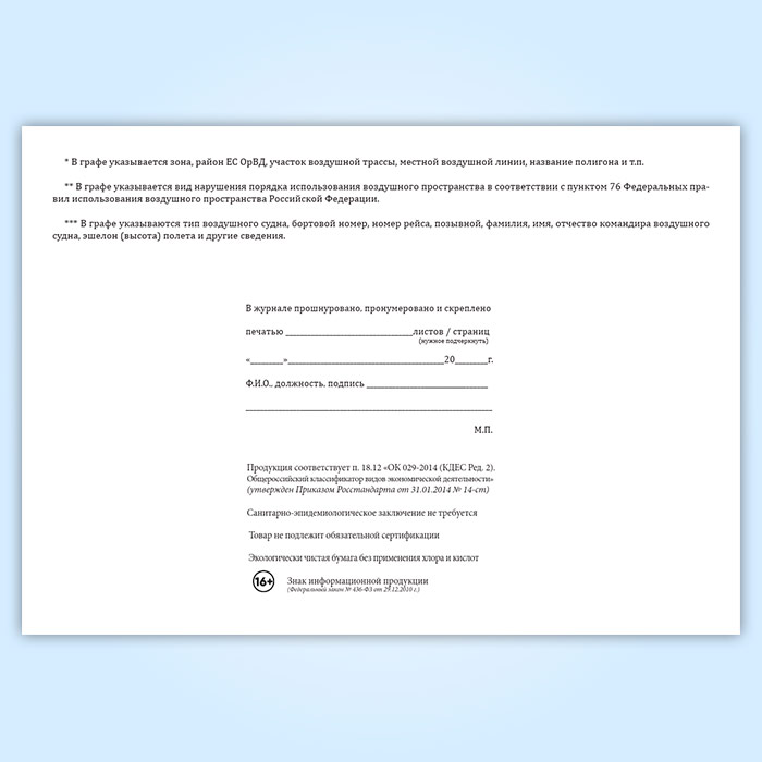 Журнал учета нарушений порядка использования воздушного пространства в Ижевске купить