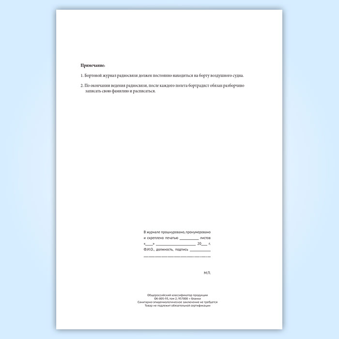Бортовой журнал радиосвязи воздушного судна авиапредприятия в Ижевске купить