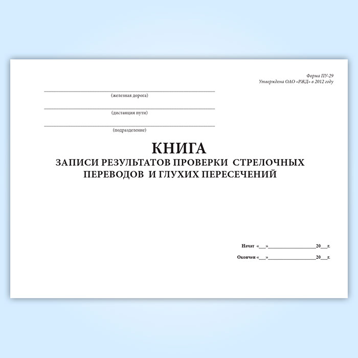 Книга записи результатов проверки стрелочных переводов и глухих пересечений (форма ПУ-29) в Ижевске купить