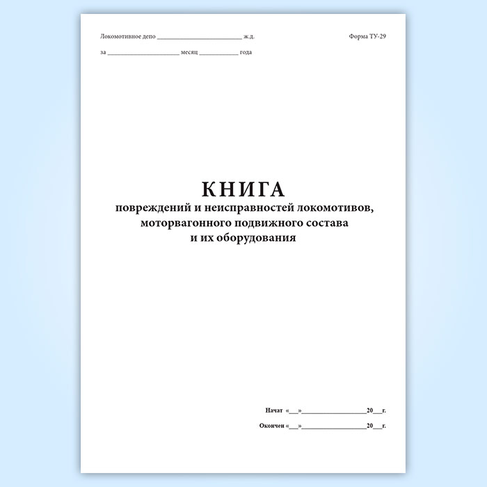 Книга повреждений и неисправностей локомотивов, моторвагонного подвижного состава и их оборудования (форма ТУ-29) в Ижевске купить