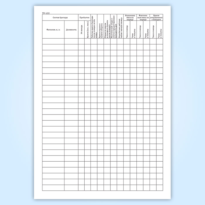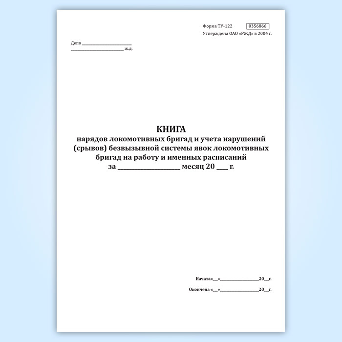 Книга нарядов локомотивных бригад и учета нарушений (срывов) безвызывной системы явок локомотивных бригад на работу и именных расписаний (форма ТУ-122) в Ижевске купить