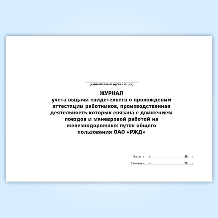 Журнал учета выдачи свидетельств о прохождении аттестации работников, производственная деятельность которых связана с движением поездов и маневровой работой на железнодорожных путях общего пользования ОАО «РЖД» в Ижевске купить