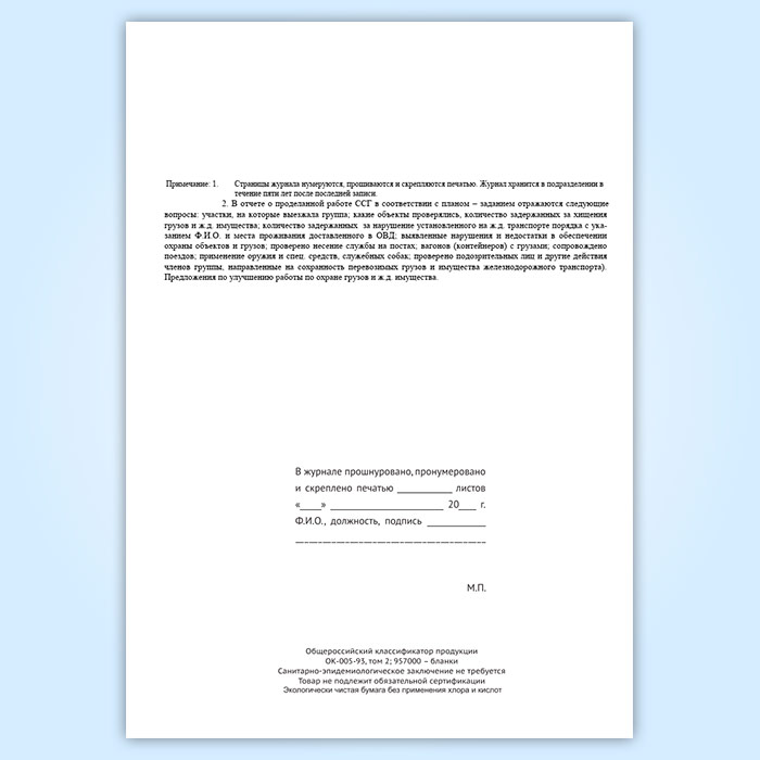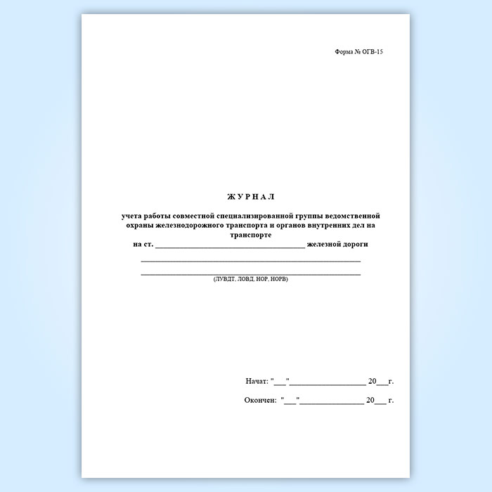 Журнал учета работы совместной специализированной группы ведомственной охраны железнодорожного транспорта и органов внутренних дел на транспорте (форма № ОГВ-15) в Ижевске купить