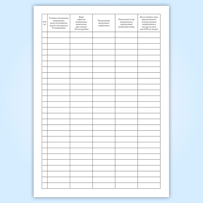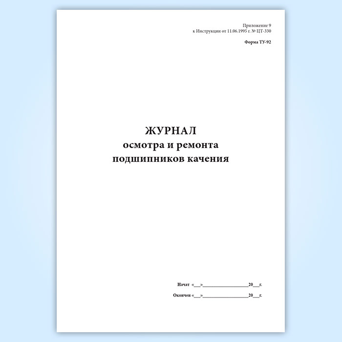 Журнал осмотра и ремонта подшипников качения (форма ТУ-92) в Ижевске купить