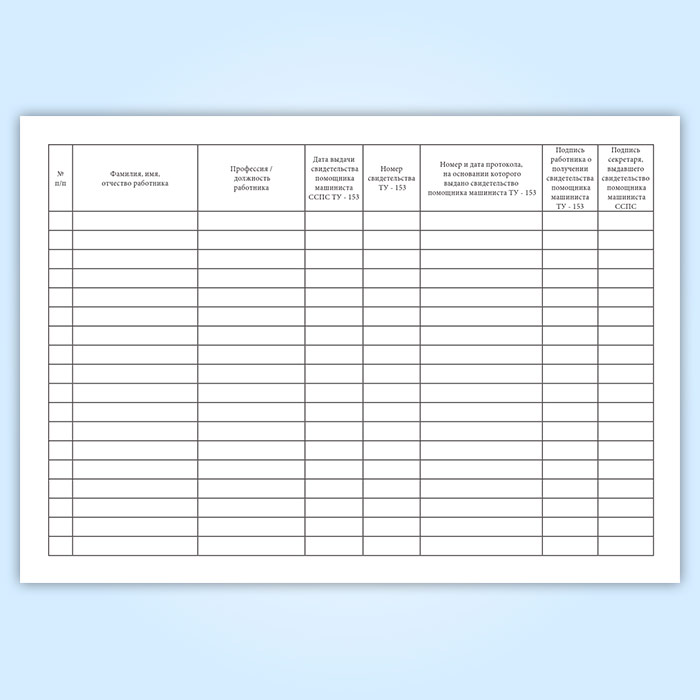 Журнал выдачи и регистрации удостоверений помощника машиниста ССПС (форма ТУ-153) в Ижевске купить