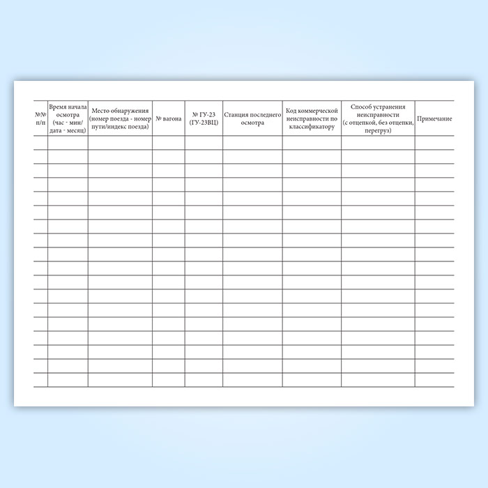 Книга регистрации коммерческих неисправностей вагонов в поездах в пунктах коммерческого осмотра (форма ГУ-98ВЦ) в Ижевске купить