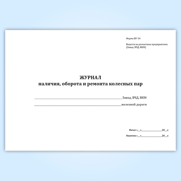 Журнал учета наличия, оборота и ремонта колесных пар (форма ВУ-54) в Ижевске купить