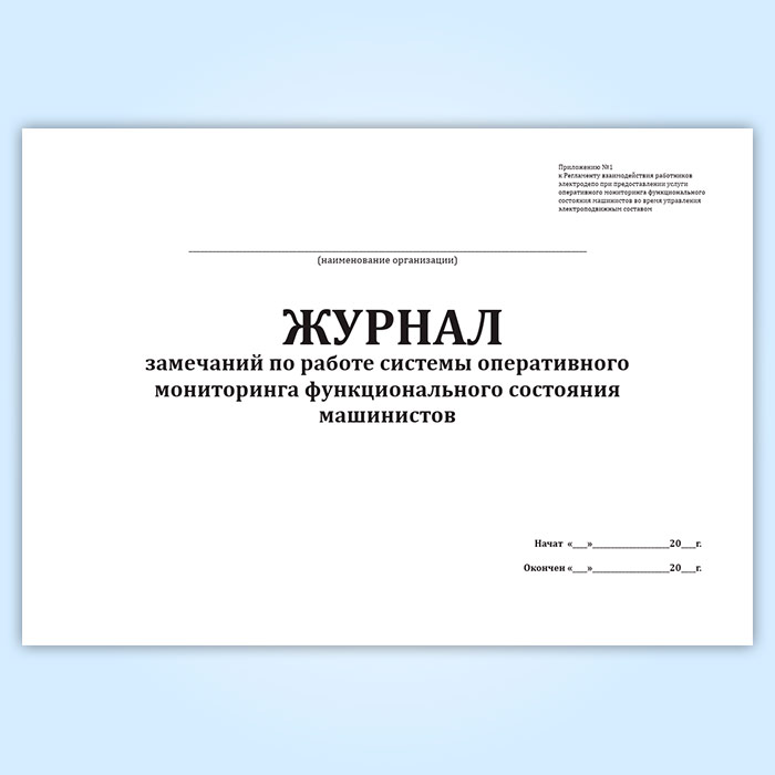Журнал замечаний по работе системы оперативного мониторинга функционального состояния машинистов в Ижевске купить