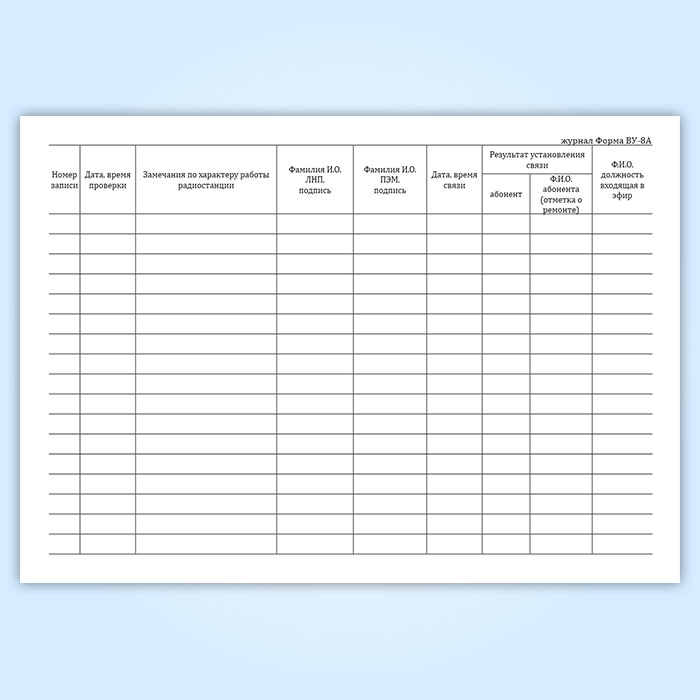 Журнал работы поездной радиостанции (форма ВУ-8А) в Ижевске купить