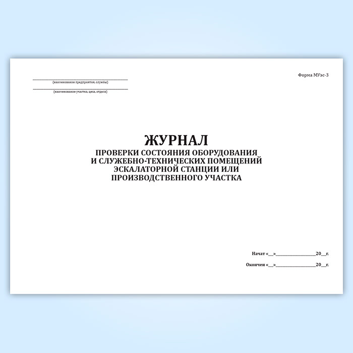 Журнал проверки состояния оборудования и служебно-технических помещений эскалаторной станции или производственного участка (форма МУэс-3) в Ижевске купить
