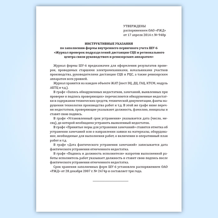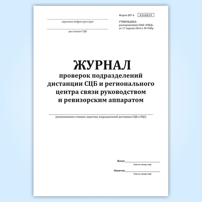 Журнал проверок подразделений дистанции СЦБ и регионального центра связи руководством и ревизорским аппаратом (форма ШУ-6) в Ижевске купить